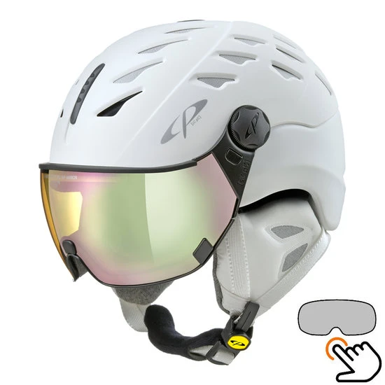 De Skihelm komt met een polariserend en meekleurend vizier, dit vizier ondersteunt en ontlast je ogen effectief bij veranderende lichtomstandigheden. De gepolariseerde lens vermindert reflecties op sneeuw en ijs en verhoogt het contrast. De spiegel lens is voorzien van een anticondenslaag en beschermt je 100% tegen UV straling. Het vizier past ook op al deze CP helmen  CP Camurai, CP Cuma, CP Carachillo, CP Corao en CP Curako.