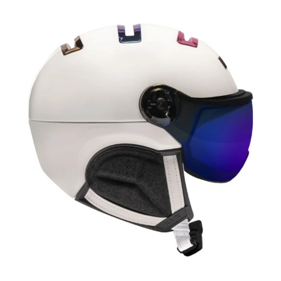 Skihelm en skibril in één, met deze Kask Chrome White-Rainbow skihelm met vizier. Deze vizierhelm is helm en skibril in één en daarnaast ideaal voor brildragers, want die houden de bril gewoon op! Het vizier geeft een prachtig breed panoramisch zicht en het vizier zal door voldoende ventilatieruimte achter het vizier niet beslaan.